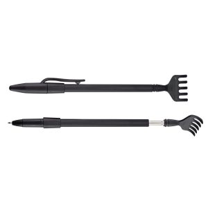 Bolígrafo plástico de color con tapa, con Manito Rascadora expansible (tipo antena). Escritura azul.