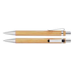 Bolígrafo de Madera de Bambú, con clip metálico. Escritura azul.