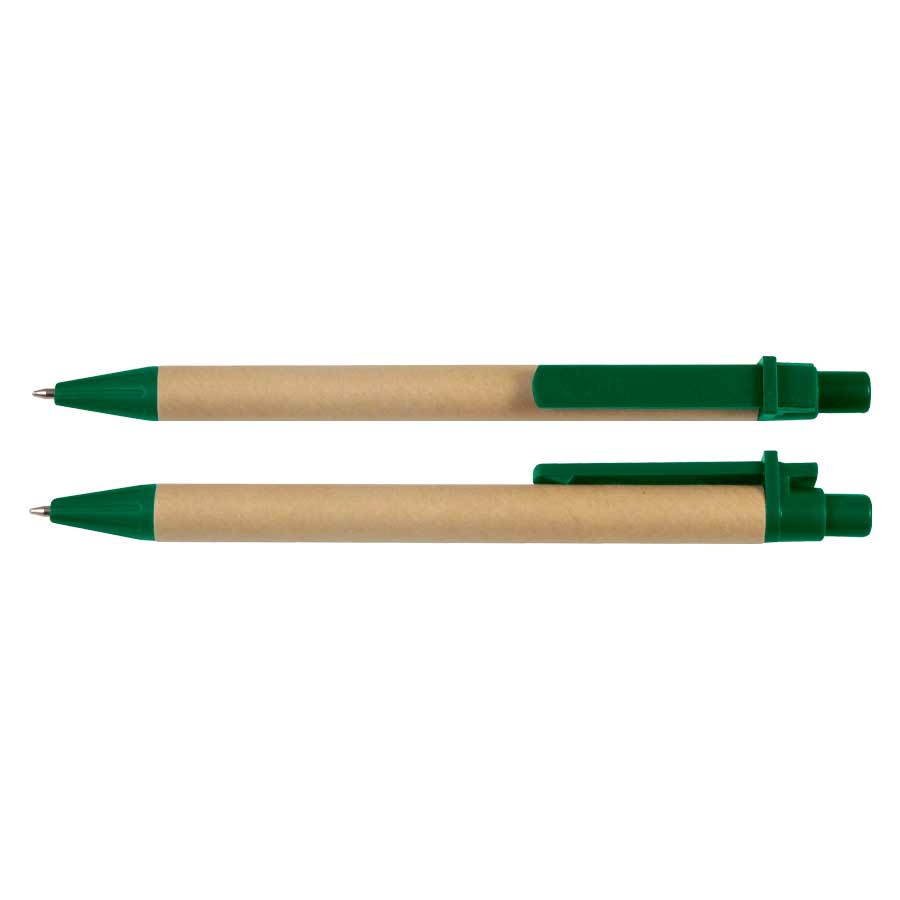 Bolígrafo Ecológico modelo COMPO de Cartón Reciclado con terminales de plástico de color PET biodegradable.