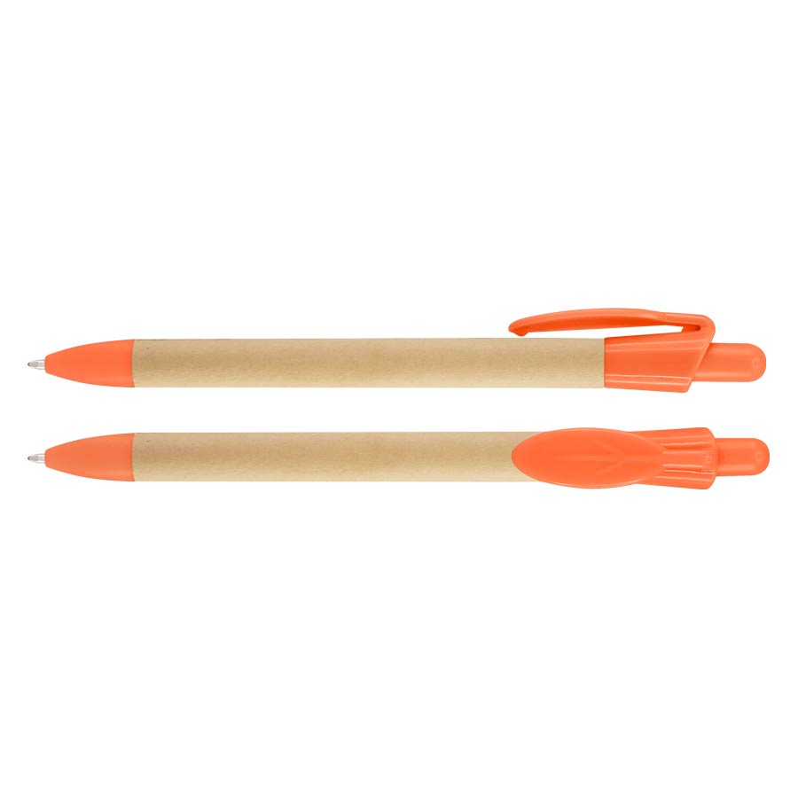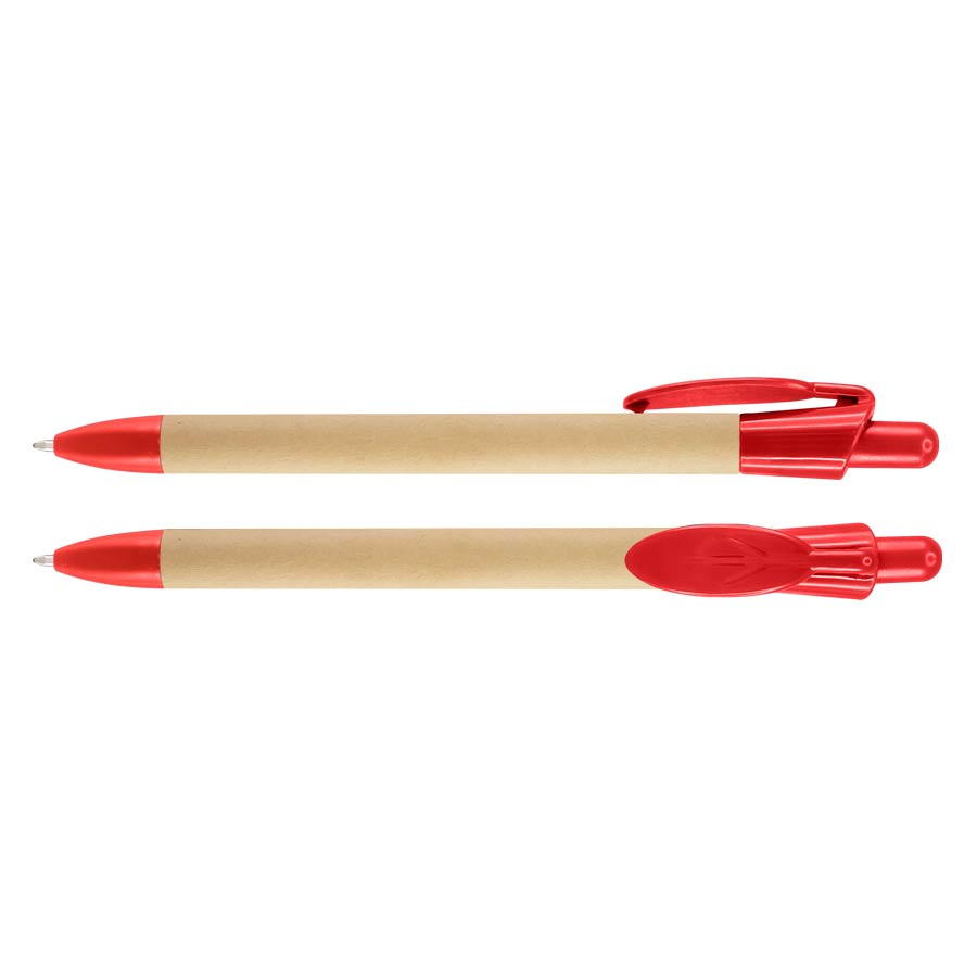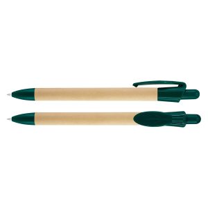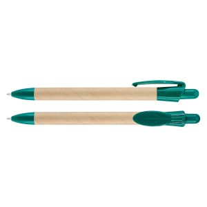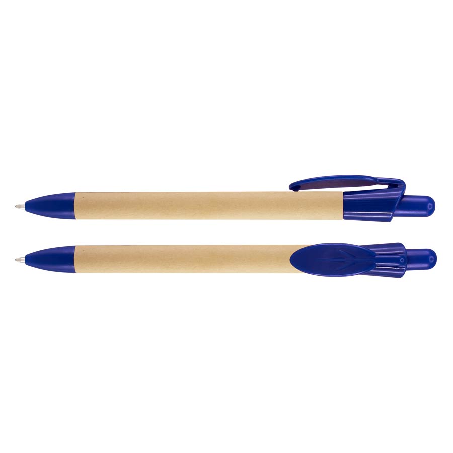 Bolígrafo Ecológico «Leave» con cuerpo de cartón reciclado y clip plástico PET biodegradable con forma de hoja. Escritura azul.