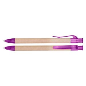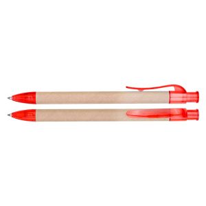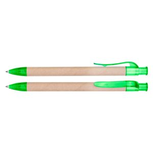 Bolígrafo Ecológico «Planet» de cartón reciclado, con terminales de color traslúcido. Escritura azul.