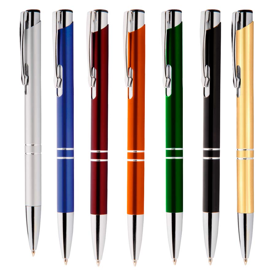 Bolígrafo de Aluminio modelo «Arrow», con terminales cromados. Refill plástico parker type. Escritura azul.