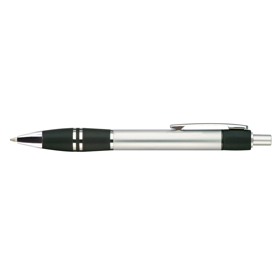 Bolígrafo plástico metalizado «Active» con goma anti-deslizante de color. Escritura Azul.