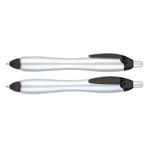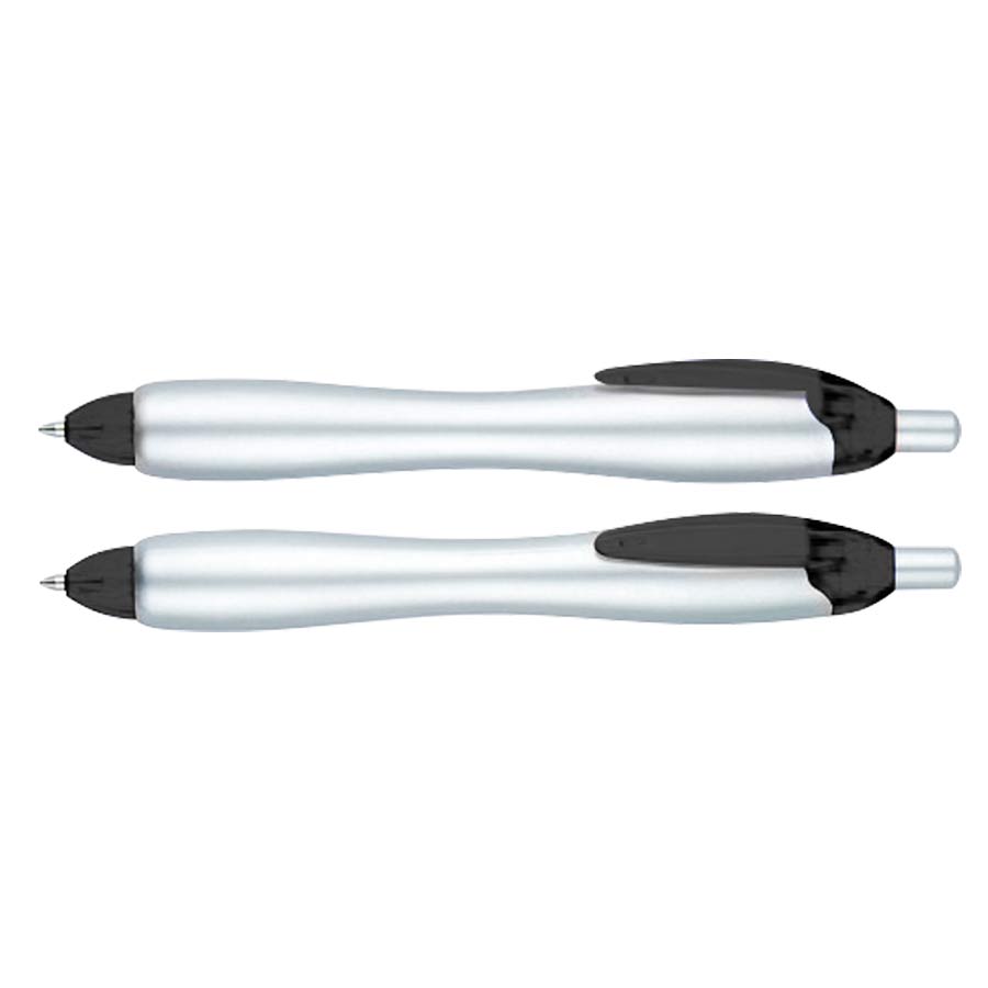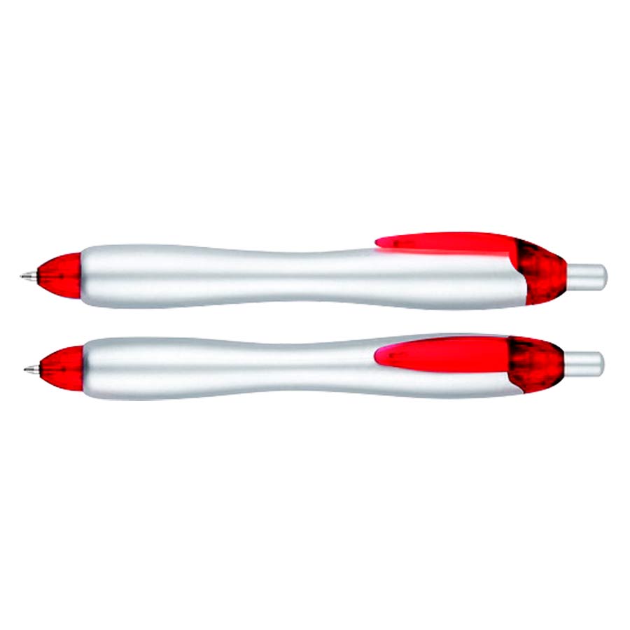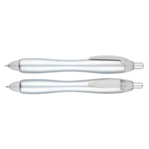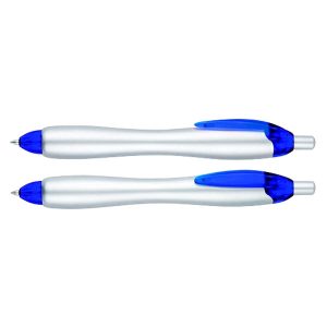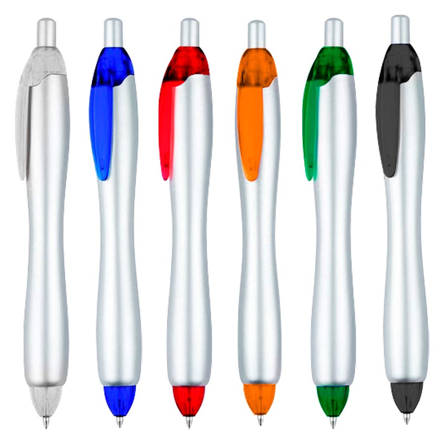 Bolígrafo «Gordito Silver» con cuerpo plateado opaco y terminales de color translúcido. El bolígrafo más vendido de Europa el año 2012. Escritura azul.