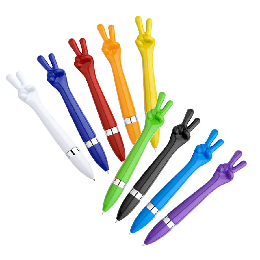 Bolígrafo plástico «Paz y Amor». Escritura Azul.
