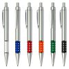 Bolígrafo «Vulcano» con cuerpo de color metalizado opaco y terminales negros. Escritura azul.