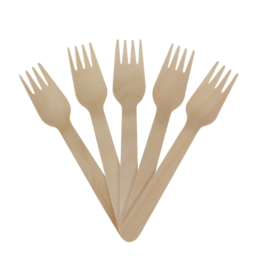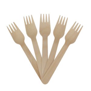 Bolsa de PP transparente con 100 tenedores de madera de Abedul de 16 x 2.6 cm c/tenedor.