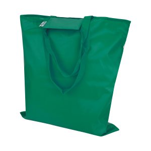 Bolsa de compras fabricada en tela reciclada RPET. Plegable para ser guardada dentro de bolsillo interior de 14 x 13 cm.