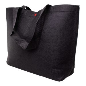 Bolsa de compras de Fieltro modelo «British». Tela Fieltro Poliéster 300g/m2. Capacidad 20 litros, tamaño 51 x 33 x 12 cm. Incluye broche rojo y manillas de poliéster negro.
