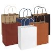 Bolsa de Papel kraft 100% reciclable y reutilizable. Fabricada en resistente material natural de 120g/m2. Contiene asas de papel prensado al tono.