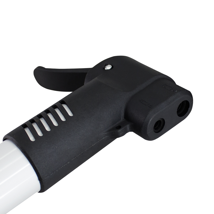 Bombín portátil con soporte para marco de bicicleta.