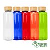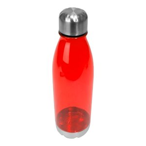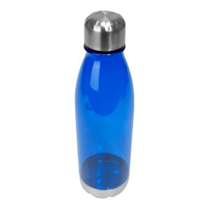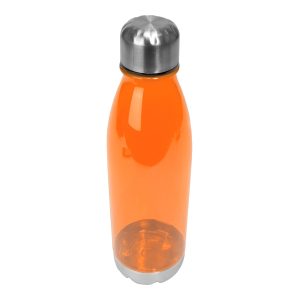 Botella plástica PET color translúcido, con fondo y tapa de Acero inoxidable, modelo «VIVID». Producto BPA FREE, para el contacto con líquidos y alimentos. Capacidad 700ml. Presentación en bolsa OPP + caja de regalo de cartón kraft.