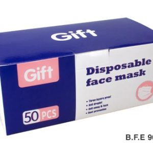 Caja de 50 mascarillas Faciales con 3 pliegues, para la protección de transmisión de partículas por vía aérea. Contiene 3 capas protectoras, las 2 capas exteriores de tela TNT, filtro interior de polipropileno liso de alta densidad. Bandas elásticas para sujeción a las orejas. Fácil y cómoda de usar.