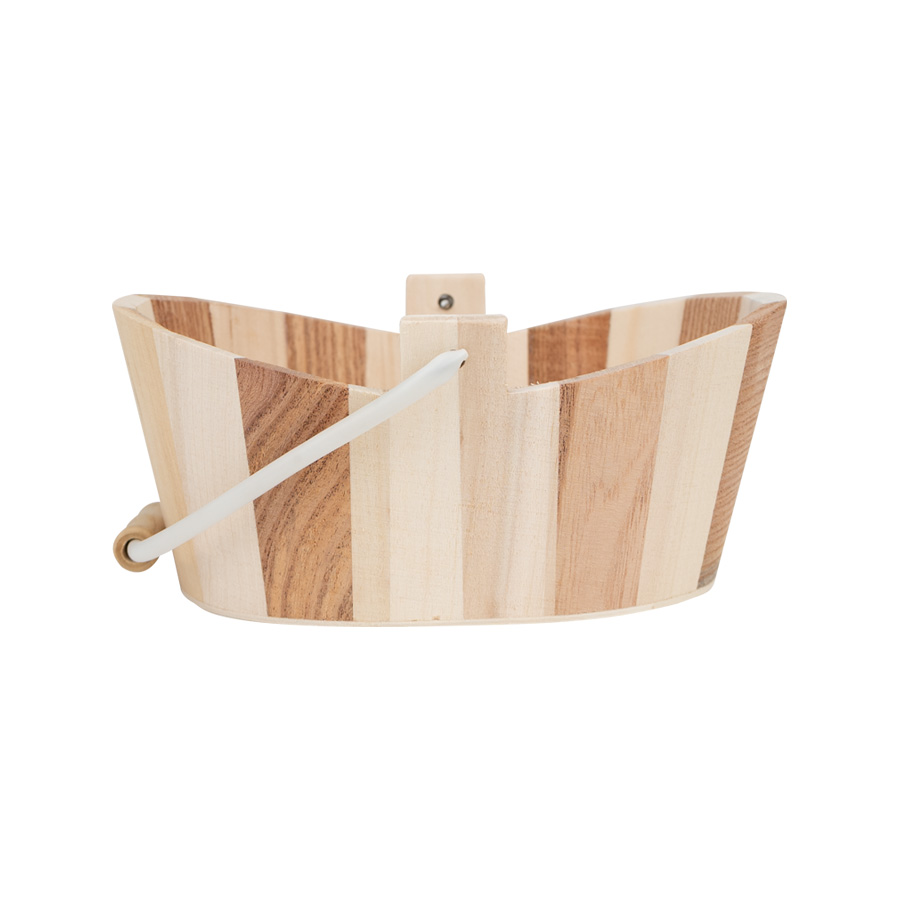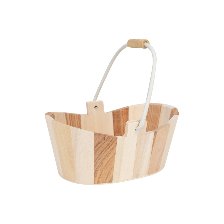 Canasto ovalado de madera de pino, con asa. Producto natural ideal para armar packs o sets de regalo.
