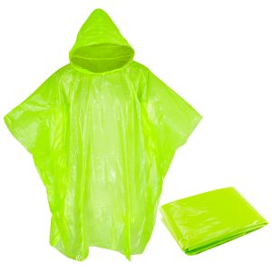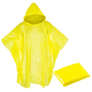 EMERGENCY PONCHO – Capa de Agua con capucha, en Polietileno de 0,03mm de espesor. Presentación en bolsa de polipropileno transparente con cierre tipo Ziploc.