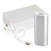 Power Bank cargador USB de plástico ABS con borde metálico. Capacidad 8400mAh. Incluye cable USB + 3 adaptadores para Conector Lightning, USB tipo C, Micro-USB, etc. Batería recargable incorporada. Presentación en caja blanca de regalo.