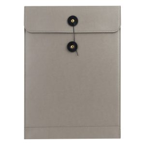 Carpeta – Funda de termo-PU eco-cuero, con forro interior de tela aterciopelada. Costuras laterales, acabado exterior barniz semi-brillo y 2 bolsillos delanteros. Cierre de solapa posterior imantado. Ideal para transportar Laptop (Notebook) o documentos.