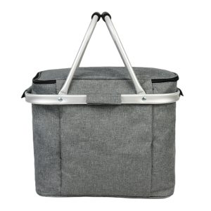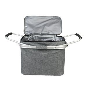 Bolso cooler grande de 23 litros de capacidad, en tela poliéster 300D/PVC. Montado sobre estructura de aluminio con asas plegables. Interior térmico aislante de PEVA y acolchado con esponja PE FOAM.