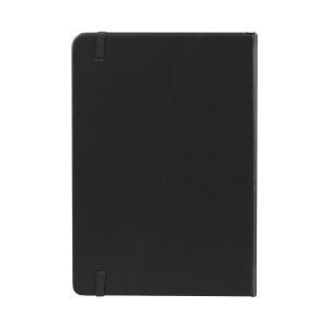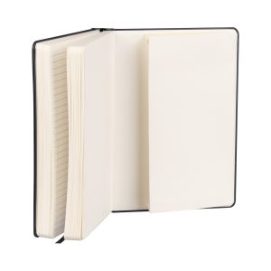 Cuaderno tamaño A5 modelo «ROMA», con tapa dura de cartón piedra de 2.0mm forrado en Eco-Cuero PU. Contiene 192 finas hojas lineadas amarillas FSC IVORY PAPER de 80g/m2 + 4 hojas de 140g/m2 con 1 bolsillo interior en la última hoja. Contiene elástico para cierre de 8mm de ancho y banda separador de hojas al tono de 6mm de ancho. Presentación en fina caja con tapa de regalo de cartón piedra de 2.5mm forrado en papel al tono de 80g/m2.