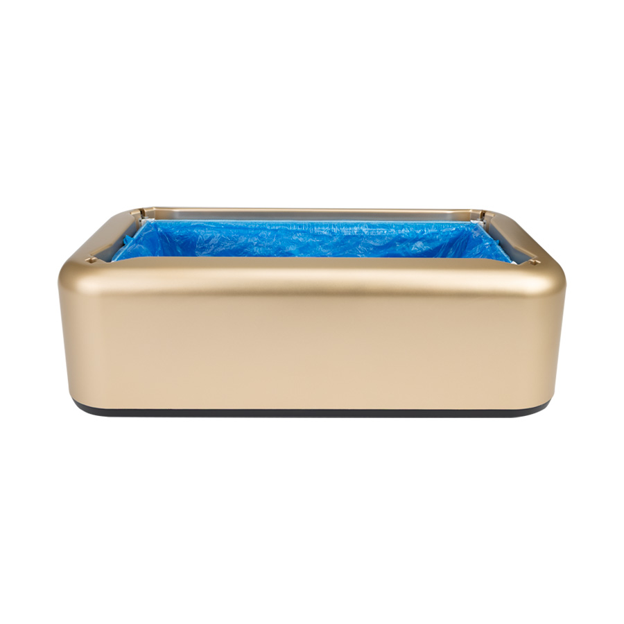 Dispensador de plástico ABS con estructura metálica, para Cubre-Calzado industrial. En cada pisada, entrega cobertor bolsa plástica de PE azul, ideal para mantener el calzado protegido de virus y bacterias en ambientes protegidos. Cada dispensador viene con 10 bolsas protectoras de calzado de PE (R18) de regalo, que se adhiere al calzado en forma automática en cada pisada dentro del dispensador.