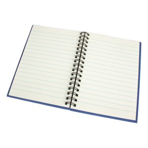 Libreta Ecológica con Tapas Duras de Cartón Reciclado 650gsm, 80 hojas interiores lineadas y prepicadas de papel reciclado y anillado metalico doble cero.