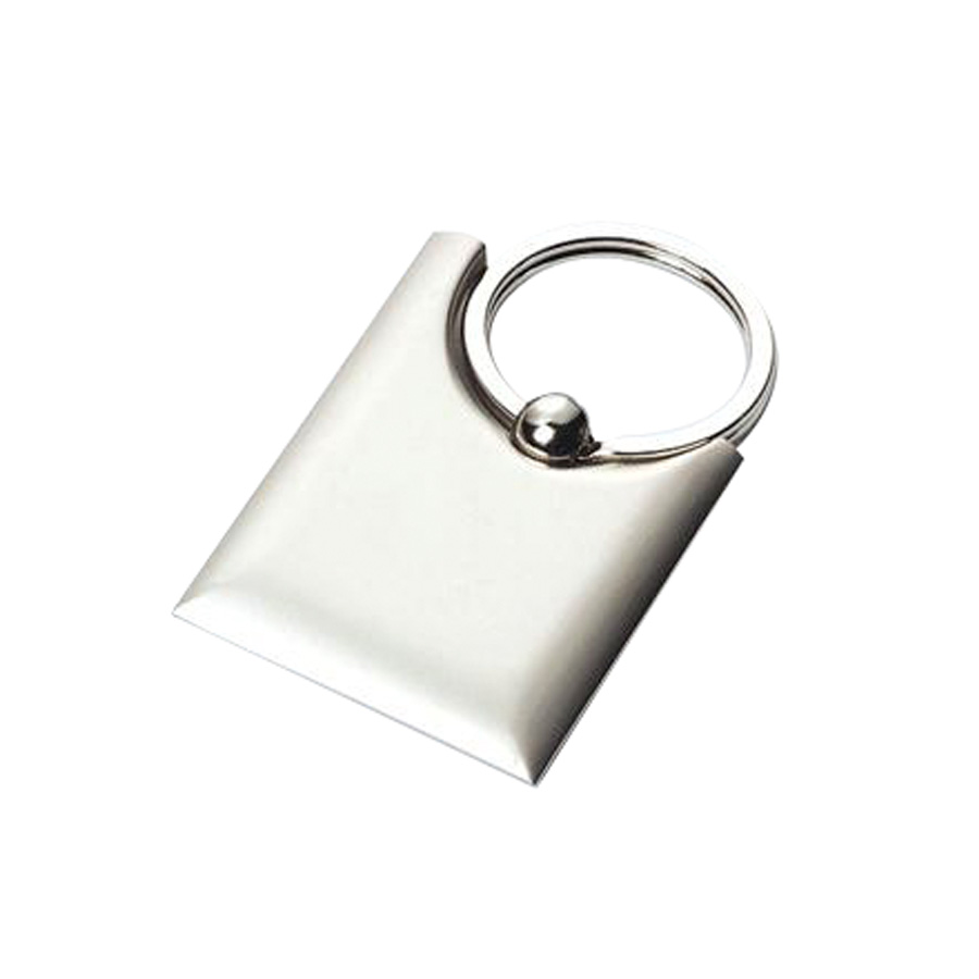 Llavero Metálico satinado, modelo «Bag». Presentación en estuche laminado negro con cuna aterciopelada.