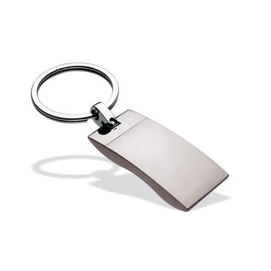 Llavero Metálico satinado, modelo «Wave». Presentación en estuche laminado negro con cuna aterciopelada.