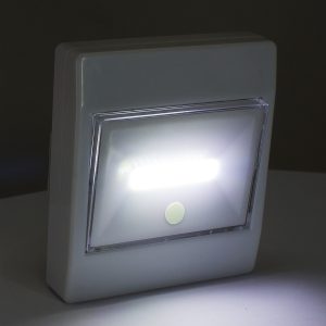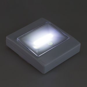 Luz LED de emergencia modelo «interruptor». Contiene 2 bandas de velcro con autoadhesivo, para instalar en cualquier pieza. Incluye círculo «glow in the dark» para visualización de encendido. Usa 3 pilas AAA (no incluidas).