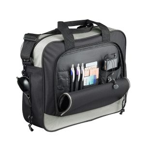 Maletín Portadocumentos de tela raquelada Polyester 600D modelo «Messenger», con solapa delantera, organizador interior y salida para auriculares.