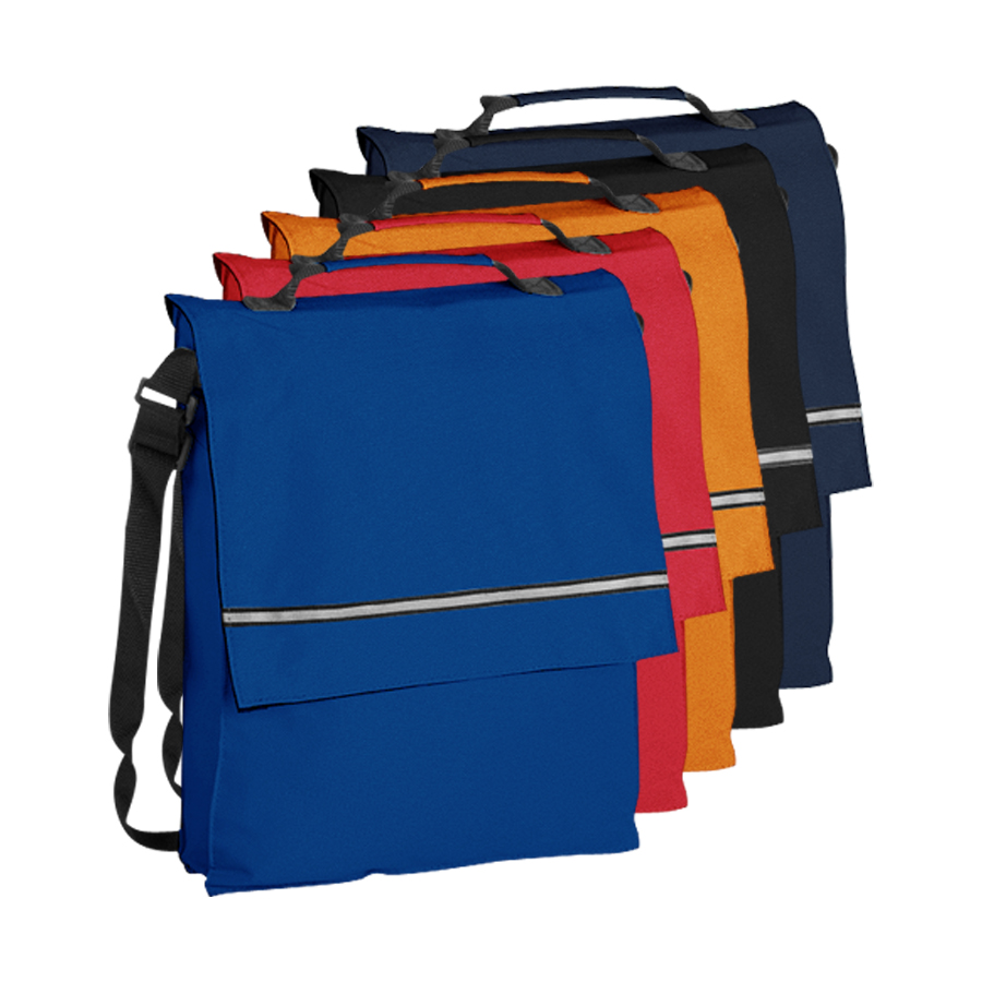 Maletín Portadocumentos de tela raquelada Polyester 600D modelo «Milan», con solapa y bolsillo interior multi-accesorios. Incluye banda reflectante en la solapa.