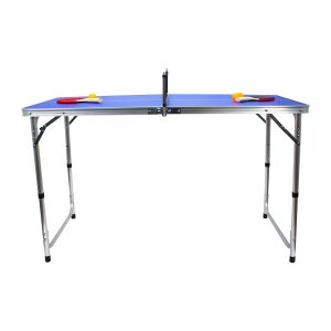 Mesa de Mini Ping-Pong plegable, cubierta azul de MDF 9mm y estructura de aluminio. Incluye 1 red, 2 paletas y 3 pelotas de Ping-Pong.