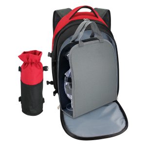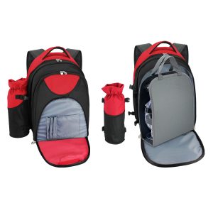 Mochila de Picnic, incluye compartimento con bolso desmontable con accesorios para 4 personas. Compartimento principal y porta-botella desmontable con aislante cooler. Bolsillo delantero independiente para logo.