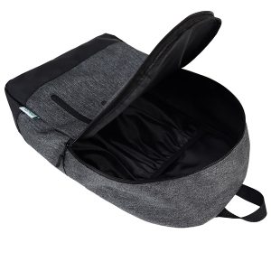 Mochila modelo «LOOK», fabricada en tela reciclada RPET, con base de eco-cuero PU 210D y parte posterior de poliéster 600D/PVC. Capacidad 18 litros, tamaño 29 x 44 x 14 cm. Incluye compartimento principal + bolsillo delantero lateral. Incluye forro interior de nylon negro. Correas ajustables.