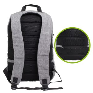 Mochila Porta-Notebook modelo «Norway». Tela PU 600D Two-Tone impermeable. Capacidad 9 litros, tamaño 29 x 45 x 7 cm. Incluye compartimento interior reforzado y acolchado para Laptop. Bolsillos interiores y delantero.