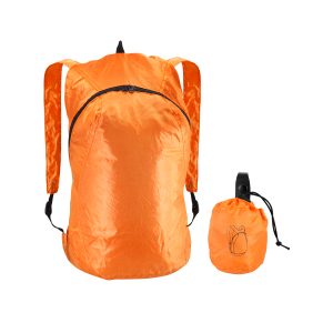 Mochila retráctil modelo «Capsule» de poliéster Ripstop 210D. Se retrae y se guarda en bolsillo interior, quedando de un tamaño cilíndrico compacto de 7 x 10 cm.