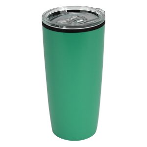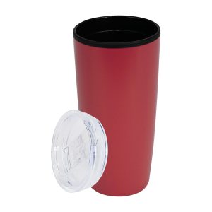 Mug metálico doble pared aislante, interior plástico PP, exterior Acero inoxidable 201 SS, recubierto con pintura POWDER COAT, modelo «LOFT». Producto BPA FREE, para el contacto con líquidos y alimentos. Fondo de silicona negra ABS anti-deslizante. Tapa removible de plástico PS Crystal Clear con sello cilíndrico de silicona. Capacidad 600ml. Presentación en bolsa PP + caja de regalo de cartón negro.