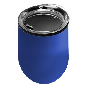 Mug metálico doble pared aislante, interior plástico PP, exterior Acero inoxidable 201 SS, recubierto con pintura POWDER COAT, modelo «SYNNA». Producto BPA FREE, para el contacto con líquidos y alimentos. Fondo de silicona negra ABS anti-deslizante. Tapa removible de plástico PS Crystal Clear con sello cilíndrico de silicona. Capacidad 350ml. Presentación en bolsa PP + caja de regalo de cartón negro.