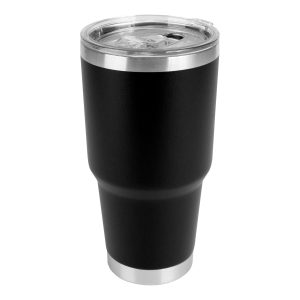 Mug térmico metálico doble pared aislante, cubierta de Polipropileno (PP) acabado mate, interior Acero inoxidable 304 SS, exterior Acero inoxidable 201 SS, modelo «BIG». Producto BPA FREE, para el contacto con líquidos y alimentos. Tapa removible de plástico PET Crystal Clear con sello cilíndrico de silicona y sistema de cierre/apertura antiderrame. Capacidad 800cc. Presentación en bolsa burbuja + caja de regalo de cartón laminado negro.