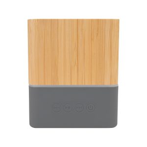 Parlante altavoz grande de Bamboo «GREAT» con juego de luces LED y sección inferior de silicona gris con funciones. Parlante de gran potencia, un regalo ideal para los que disfrutan del buen sonido.