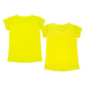 Polera 100% POLIÉSTER de 150gr/m2, para MUJER. Cuello redondo, manga corta. Presentación individual en bolsa de polipropileno transparente.