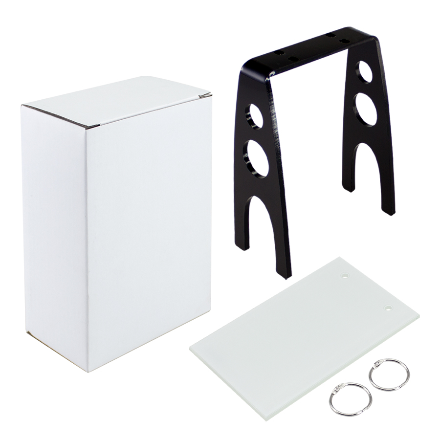 Porta-Retrato colgante para Sublimación. Base Acrílico negro. Porta-Foto de Vidrio de 9.5 x 15 x 0.3 cm. Presentación en caja de Cartón blanco.
