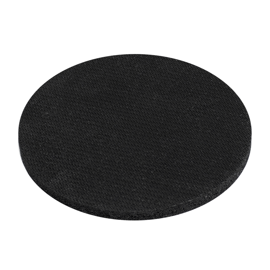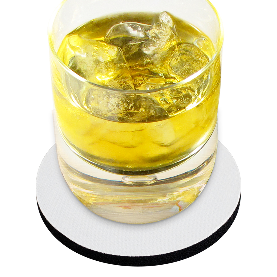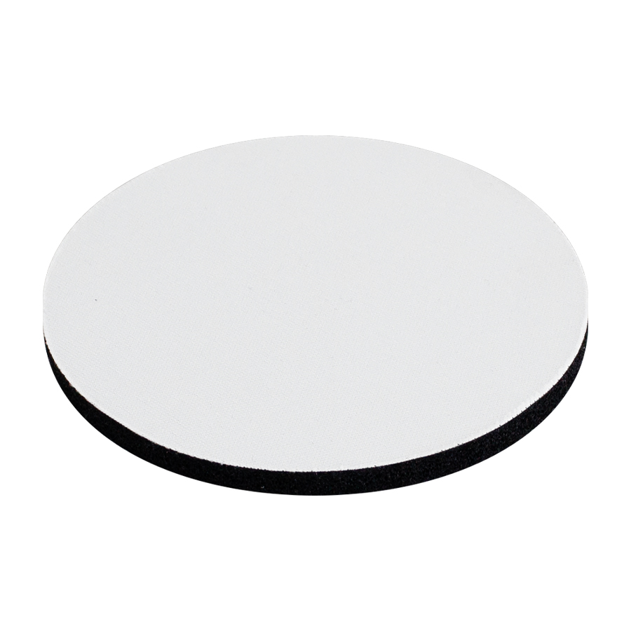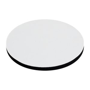 Posavaso redondo de 5mm de espesor y 9cm. de diámetro, con base de silicona negra y cubierta de tela blanca para Sublimación.