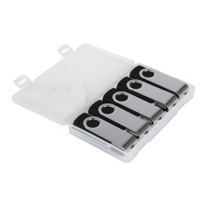 Set de 5 USB Pendrive 2.0 de 64GB de memoria cada Pendrive, con carcasa metálica de giro. Cada Pendrive tiene la particularidad de venir con cuerpo plástico bicolor: por un lado un color blanco común para todos los Pendrive, y por el otro, cuerpo de color con los colores clásicos de Promo Import. Presentación en Estuche de PVC translúcido de regalo