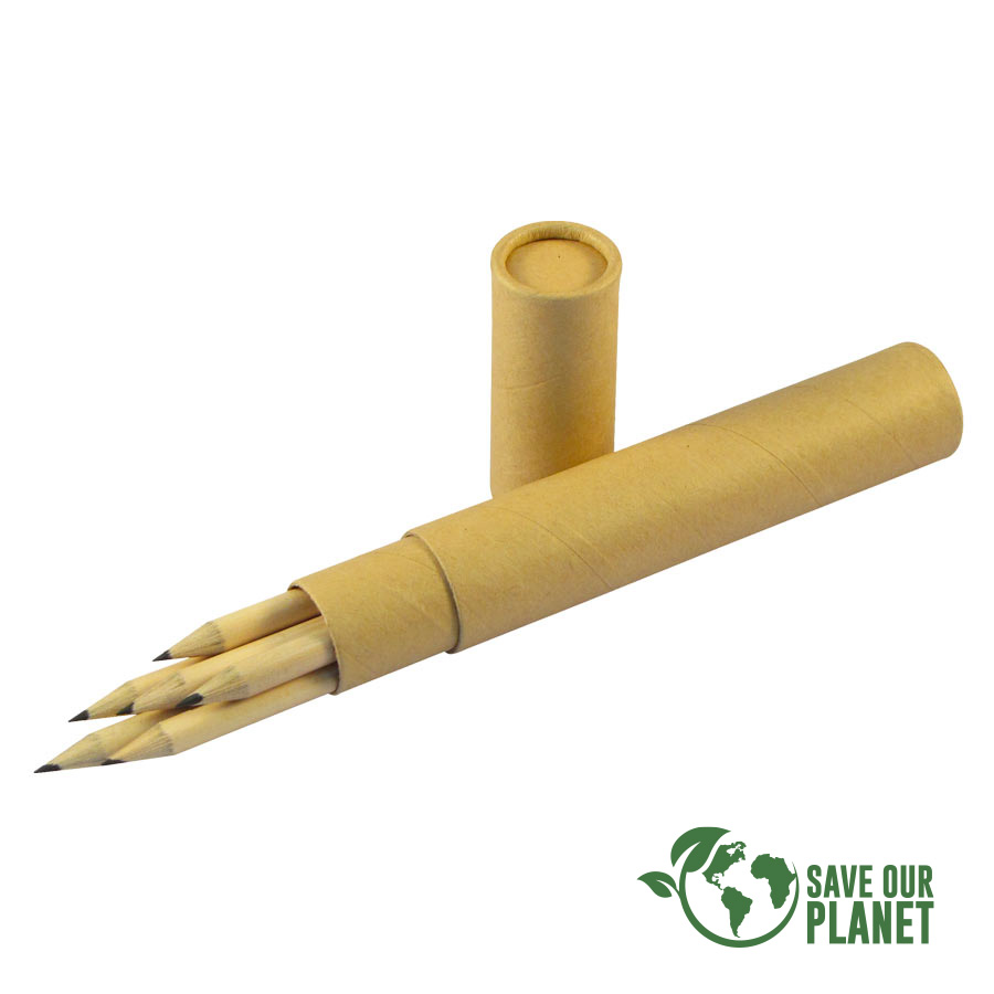 Set de 6 Lápices Grafito Negro, en Estuche cilíndrico de Cartón Reciclado.