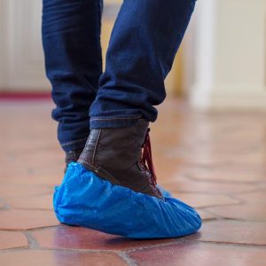 Set de 100 bolsas Cubre-Calzado azul de tela no tejida TNT. Unidad mínima de venta, bolsa de 100 unidades.