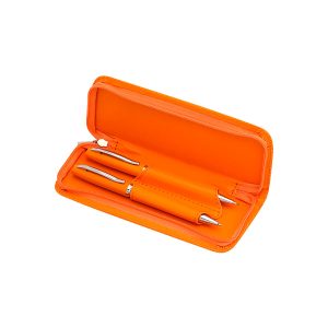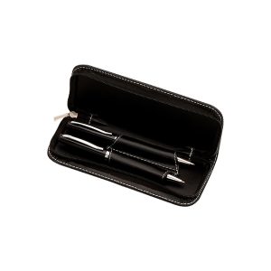Set de Escritura «Finit». Incluye Bolígrafo Metálico + Portaminas Metálico. Minas 0.7mm incluidas. Presentación en fino estuche simil cuero.