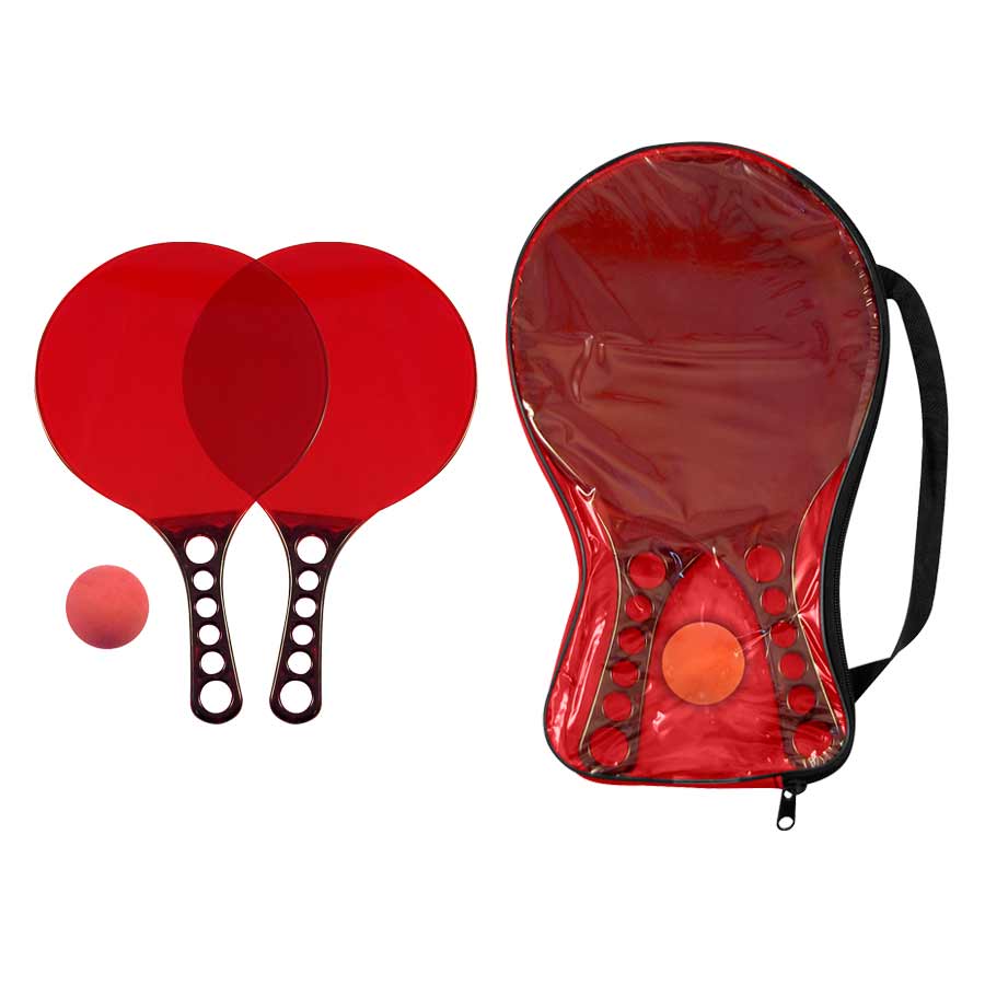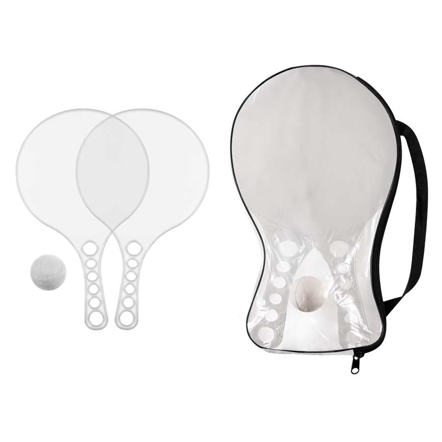 Set de Paletas de Playa de Acrílico de color Traslúcido, incluye estuche de PVC y pelotita de goma.