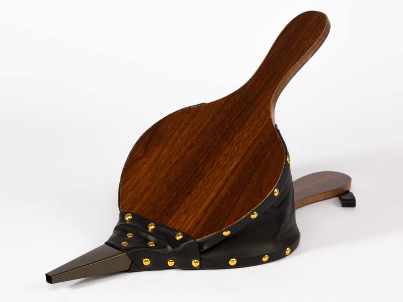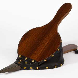 Soplador grande de aire tipo Acordeón, para chimeneas y parrillas. Superficie MDF, reforzado con cuero y tachas. Toma de aire posterior. Amplia superficie para logo.
