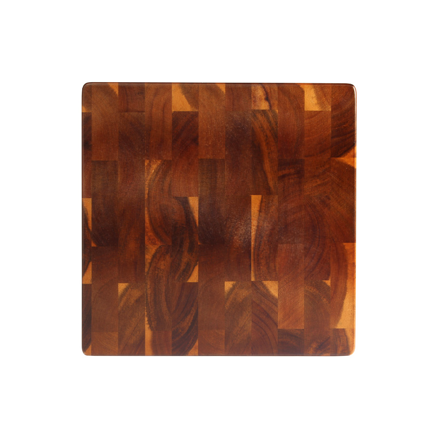 Fina tabla cuadrada de madera sólida de ACACIA con piezas integradas, diseño único para sorprender! Ideal para cortar y/o servir verduras, quesos, frutos secos o picoteo. Madera trabajada y acabada en máquina, de forma 100% regular, con superficies, laterales y cantos suaves y redondeados, para una mayor higiene y comodidad al momento de cortar y servir alimentos. La Acacia, junto con la Teca, es considerada la mejor, más dura y más resistente madera para utilizar para cortes de alimentos – Densidad aprox. 770kg/m3. – Dureza 9.5 (test de Monnin)