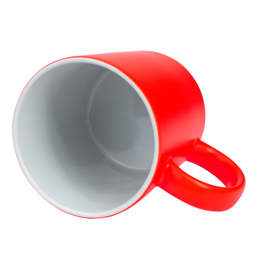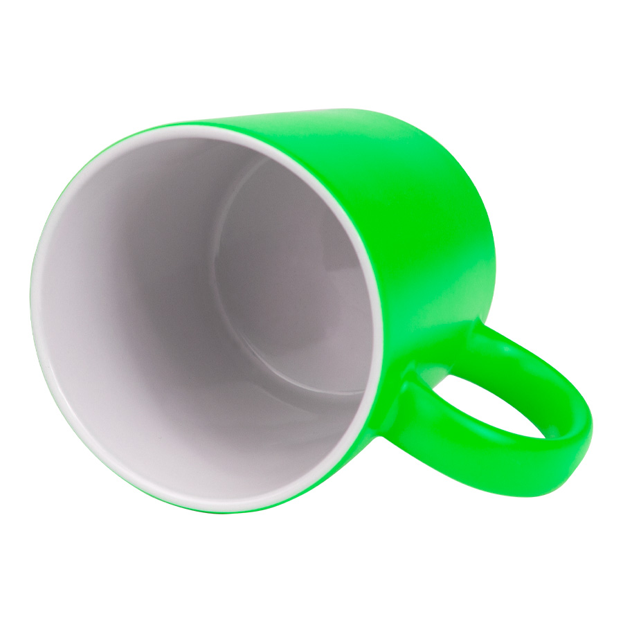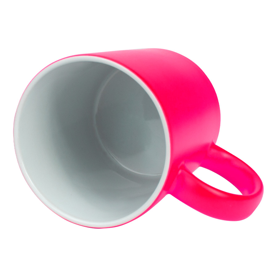 Tazón cerámico de 11oz (330 cc) con superficie exterior de color fluorescente, interior blanco, para Sublimación. Producto de calidad superior ORCA. Presentación en bolsa plástica translúcida + caja de cartón blanco.